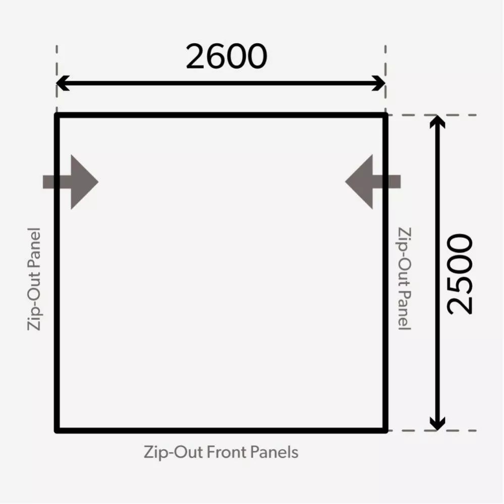optional erhältliches Front-Vordach, Side Wing und Vorzelterweiterungen