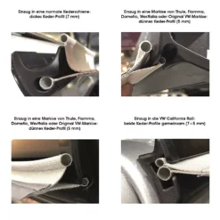 Einzug in die VW California Rail: beide Keder-Profile gemeinsam (7+5 mm) - inklusive 3 Elemente der doppelten C-Kunststoff-Verbindungsschiene