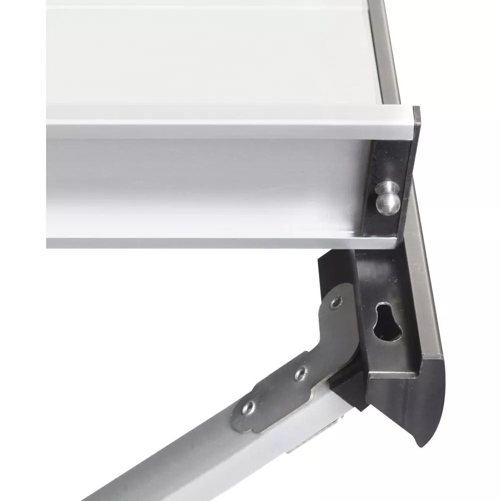 innovatives Befestigungssystem fĂĽr die Tischplatte - stabiler Rahmen aus Aluminium-Vierkantrohrenn und zentraler Stabilisierungsstange