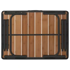 Der Camping-Klapptisch Charelle von Eurotrail mit einem stabilen Aluminiumrahmen und einer wasserfesten Bambus-Tischplatte ist auf 2 Höhen einstellbar.