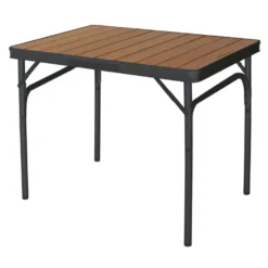 Der Camping-Klapptisch Charelle von Eurotrail mit einem stabilen Aluminiumrahmen und einer wasserfesten Bambus-Tischplatte ist auf 2 Höhen einstellbar.