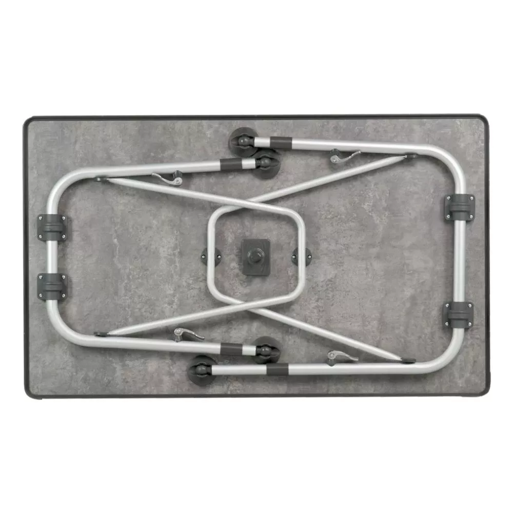 Der Camping-Klapptisch Westfield Superb 80 mit einem stabilen Gestell aus Aluminium-Rundrohr und einer wetterfesten Tischplatte erscheint in elegantem Design. Alle 4 Tischbeine sind einzeln und stufenlos höhenverstellbar. Mit einer einfach zu bedienenden Exzenterverriegelung mit Schnellverschluss gelingt die Höhenverstellung leicht und einfach. Die TellerfĂĽsse mit Kugelgelenk ermöglichen einen festen Stand, schonen den Vorzeltteppich und verhindern das Einsinken auf weichem Boden.Â