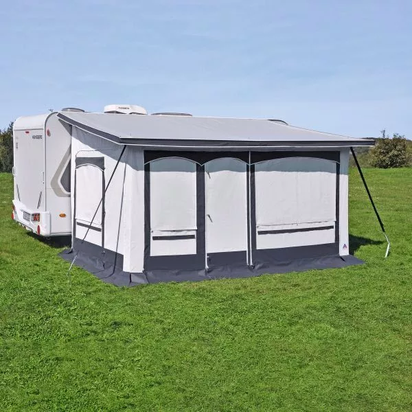 Das Hahn Vorzelt Friesland ist mit seinem robustem PVC-Material ideal als Wintervorzelt bzw. Ganzjahresvorzelt geeignet. Das Vorzelt wird in dieser AusfĂŒhrung links im Keder eingezogen.Â