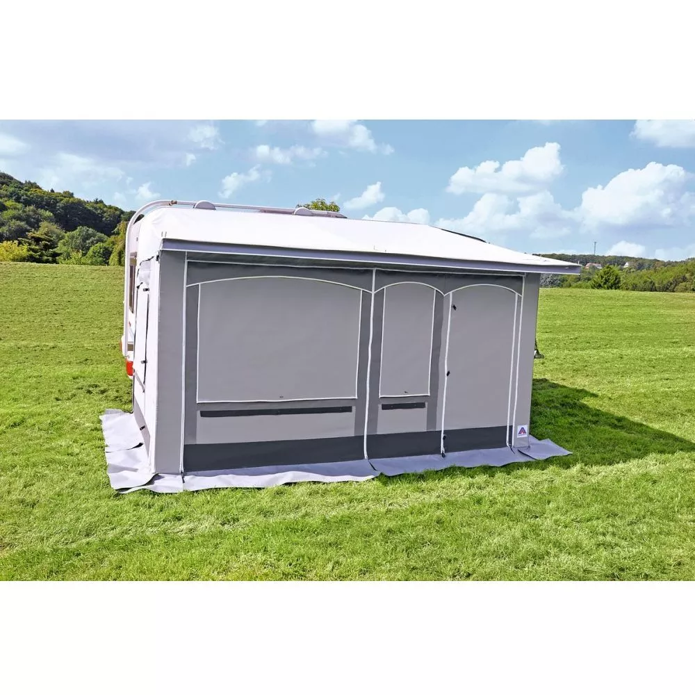 Alle Seiten- und VorderwĂ€nde können komplett herausgenommen und zu einem Sonnendach umgebaut werden. Auch können bei dem Vorzelt Wien die Vorder- und SeitenwĂ€nde mit optionalen Verandastangen zu einer beliebten Veranda abgeklappt werden. Beide SeitenwĂ€nde haben TĂŒren und können komplett miteinander ausgetauscht werden, wodurch Sie noch flexibler sind.