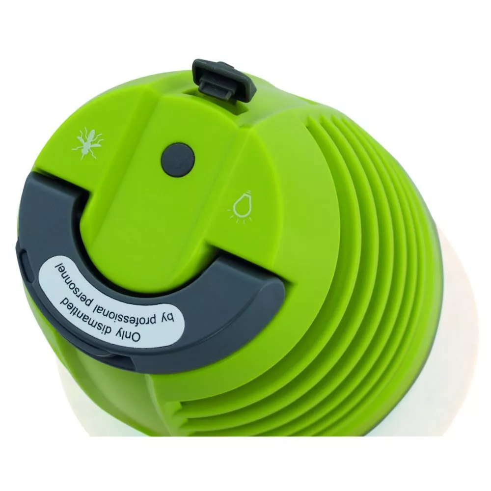 Wiederaufladbare Anti-Mücken-Lampe mit einer 2-1 Funktion. Die Lampe gibt ein helles Licht und mit dem speziellen ultravioletten Licht fungiert sie auch als Mückenfalle. Das violette UV-LED-Licht zieht die Mücken in einem Umkreis von 5 Metern an, die dann automatisch von der Spirale abgetötet werden. Die Lampe arbeitet ohne Chemikalien oder Flüssigkeiten und ist 100% sicher für Kinder und Tiere. Mit Haken ausgestattet, spritzwassergeschützt (IP44) und leicht zu reinigen. Perfekt für den Ausseneinsatz in kleineren Bereichen wie kleinen Zelten oder Innenzelten.