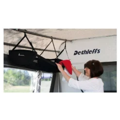 Der Isabella TopOrganizer ist ein praktisches Aufbewahrungsnetz, das einfach ans Vorzelt- oder Sonnendachgestänge gehängt wird. Die Aufhängeschnüre sind verstellbar, so dass eine gerade Montage möglich ist.