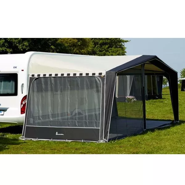 Eine Netzseite zur Montage an der seitlichen Dachstange ermöglicht es, die Seitenwand herauszunehmen und durch eine ganze Moskitonetz-Seitenwand zu ersetzen. Das ist inbesondere ein Vorteil in warmen Regionen, wo eine gute BelĂŒftung des Vorzeltes erforderlich ist.