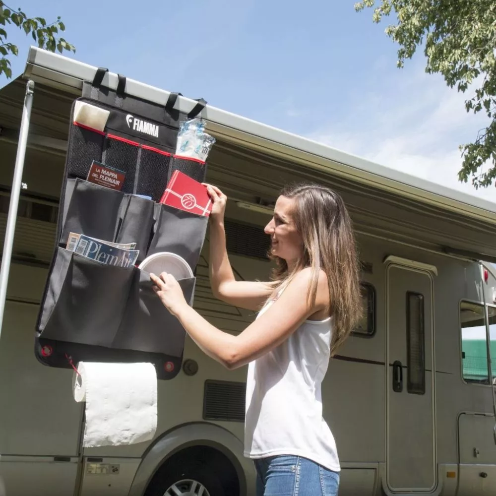 MIt dem Fiamma Organizer S kannst du deine Camping-Utensilien sicher und platzsparend verstauen. Er kann als hĂ€ngendes KĂŒchenregal, Bad-Organizer oder als Spielzeugtasche genutzt werden. Er sorgt fĂŒr mehr Ordnung und mehr VerstauungskapazitĂ€t. Der Fiamma Camping-Organizer S ist aus UV-resistentem Polyester hergestellt und ist deshalb auch ausserhalb des Fahrzeugs einsetzbar. Wird er nicht benötigt, kann er schnell und platzsparend zusammengelegt werden. Er kann auf 3 verschiedene Arten angebracht werden, um sich so verschiedenen Situationen oder Positionen anzupassen.