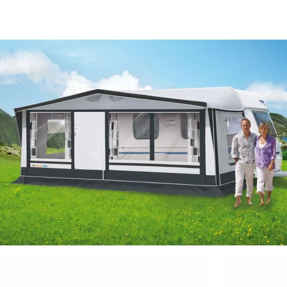 Das Wohnwagenvorzelt Frankana Freiko Barcelona ist durch sein Material ideal geeignet fĂŒr Reisecamping. FĂŒr eine schraubfreie Montage an deinem Campingfahrzeug, ist das Vorzelt mit einem praktischen Doppelkeder ausgestattet. Mit einer Vorzelttiefe von 240 cm hast du genĂŒgend Platz, um dich heimisch einzurichten. CampingstĂŒhle, einen Campingtisch und viele andere, unverzichtbare Campingutensilien finden garantiert ihren Platz.