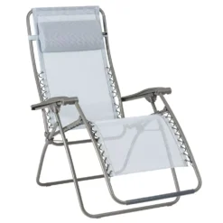 Leicht, platzsparend klappbar, widerstandsfähig und praktisch. Der Relaxstuhl verfügt über eine stufenlose Einstellung für die gewünschte Sitz- oder Liegeposition. Die Einstellung „Schwerelosigkeit“ (mit den Füssen leicht oberhalb des Herzens) schenkt eine ideale Entspannungsposition. Armlehnen aus Harz mit Schaumstoffeinlage bieten zusätzliche Bequemlichkeit. Zur weiteren Ausstattung des Relax-Liegestuhls RSXA von Lafuma gehören zudem ein stabiles, hoch belastbares HLE-Stahlrohrgestell, eine abnehmbare ergonomische und verstellbare Kopfstütze für maximalen Komfort und der Bezug aus angenehmem Batyline Iso-Gewebe. Der für den Aussenbereich hervorragend geeignete Bezug ist abnehmbar und mit einer Aufhängung an austauschbaren Gummischnüren ausgestattet.
