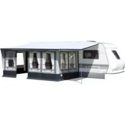 Das Wohnwagenvorzelt brand Forum ist ein Teileinzugszelt mit einem Pultdach aus PVC-Material für höchste Beanspruchungen des Saison- und Ganzjahrescampings. Es ist in sechs Grössen für den rechts- oder linksseitigen Kedereinzug erhältlich. Die Fensterfolien sind geschützt durch Fensterklappen, zwei 3-fach-Fenster regulieren die Lüftung nach Wunsch. Der besondere Clou dieses Wohnwagen-Vorzeltes: Das Türelement und das Fenster-/ Lüftungselement der Seitenwand können gegeneinander und auch mit allen Fensterelementen der Vorderwand getauscht werden. Der dreifache Erdstreifen sorgt für die notwendige Stabilität des Vorzelts und für einen sicheren Bodenabschluss.