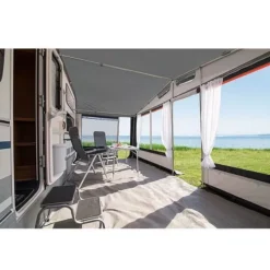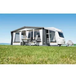 Das Vorzelt dwt Prinz Plus ist für alle Jahreszeiten die richtige Entscheidung. Die attraktive Farbkombination dieses modernen Vorzeltes liegt voll im Trend. Die verarbeiteten Materialen trotzen jedem Wetter, lassen sich leicht reinigen und sind besonders robust. Die innen eingenähten Hohlsäume in den Wänden nehmen Zusatzstangen für mehr Stabilität auf. Die Vorderwand-Segmente lassen sich zu einer Veranda abklappen. Für mehr Platz kannst du beim dwt Prinz Plus auf der rechten Seite einen Erker anbauen.