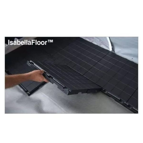 Hält man sich viel in seinem Vorzelt auf, so ist es angenehm, wenn der Boden eben ist und der Teppich glatt liegt. IsabellaFloor bietet zahlreiche Vorteile. Er ist ohne Werkzeuge leicht auszulegen, da die Elemente mit Verschlusszapfen versehen sind und wie ein Bauklotzsystem verbunden werden. Er ist leicht aufzubewahren und hat eine hohe Lebensdauer. IsabellaFloor hat ausserdem den Vorzug, dass man Schrägen und Eckschrägen zukaufen kann. Das ergibt nicht nur ein ansprechendes Finish, sondern ist auch praktisch z. B. für Rollstuhlfahrer und Familien mit Kinderwagen.