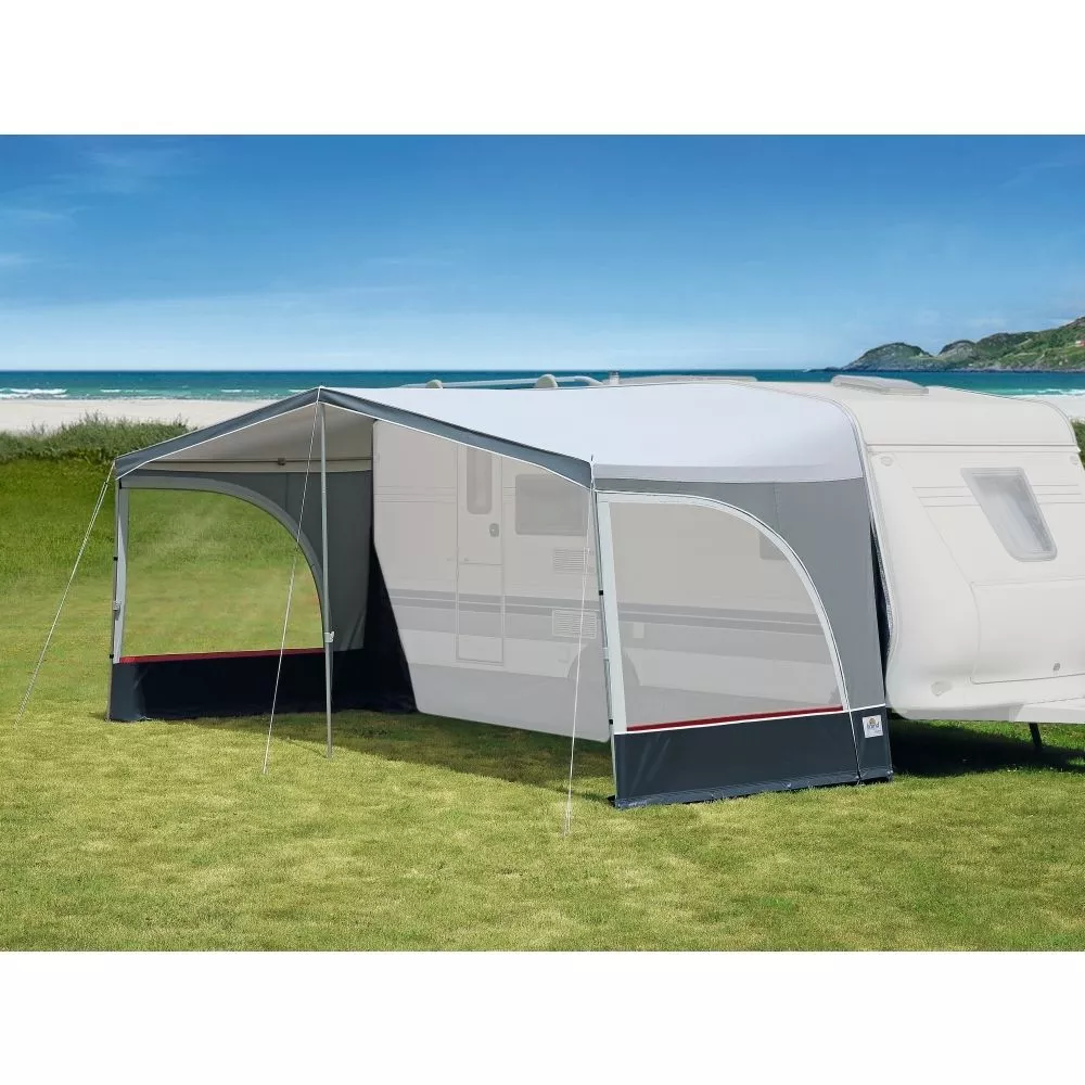 Das Wohnwagen-Sonnendach brand Sunny SD ist ein komfortables, ca. 235 cm tiefes QualitĂ€ts-Sonnendach, das inklusive SeitenwĂ€nden geliefert wird. Diese Seitenwandelelemente sind durch ReissverschlĂŒsse einfach zu entnehmen. Das Sunny SD ĂŒberzeugt durch einen einfachen Aufbau des VorzeltgerĂŒsts mit drei Standbeinen und drei Dachstangen. Das leichte AluminiumgestĂ€nge wird besonders von Reisecampern geschĂ€tzt. Das spezielle Sonnendach-Gewebe garantiert ein minimales Gewicht.
