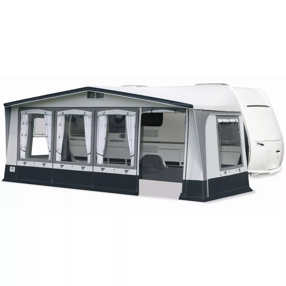 In der Gestaltung bist du sehr flexibel: Durch die Element-Technik der Front, kannst du die Türposition frei wählen. Der beliebte Veranda-Effekt ist mit zusätzlichen Balkonstangen ebenfalls möglich. Benötigst du nur ein luftiges, Schatten spendendes Wohnwagen-Sonnendach, entfernst du einfach alle Front- und Seitenwand-Elemente.